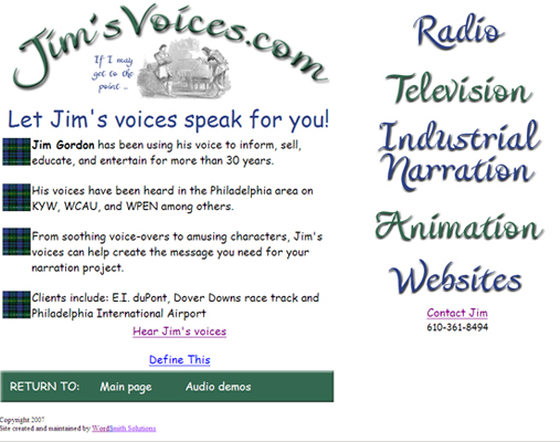 www.jimsvoices.com Site created in 2007 maintained until 2011.